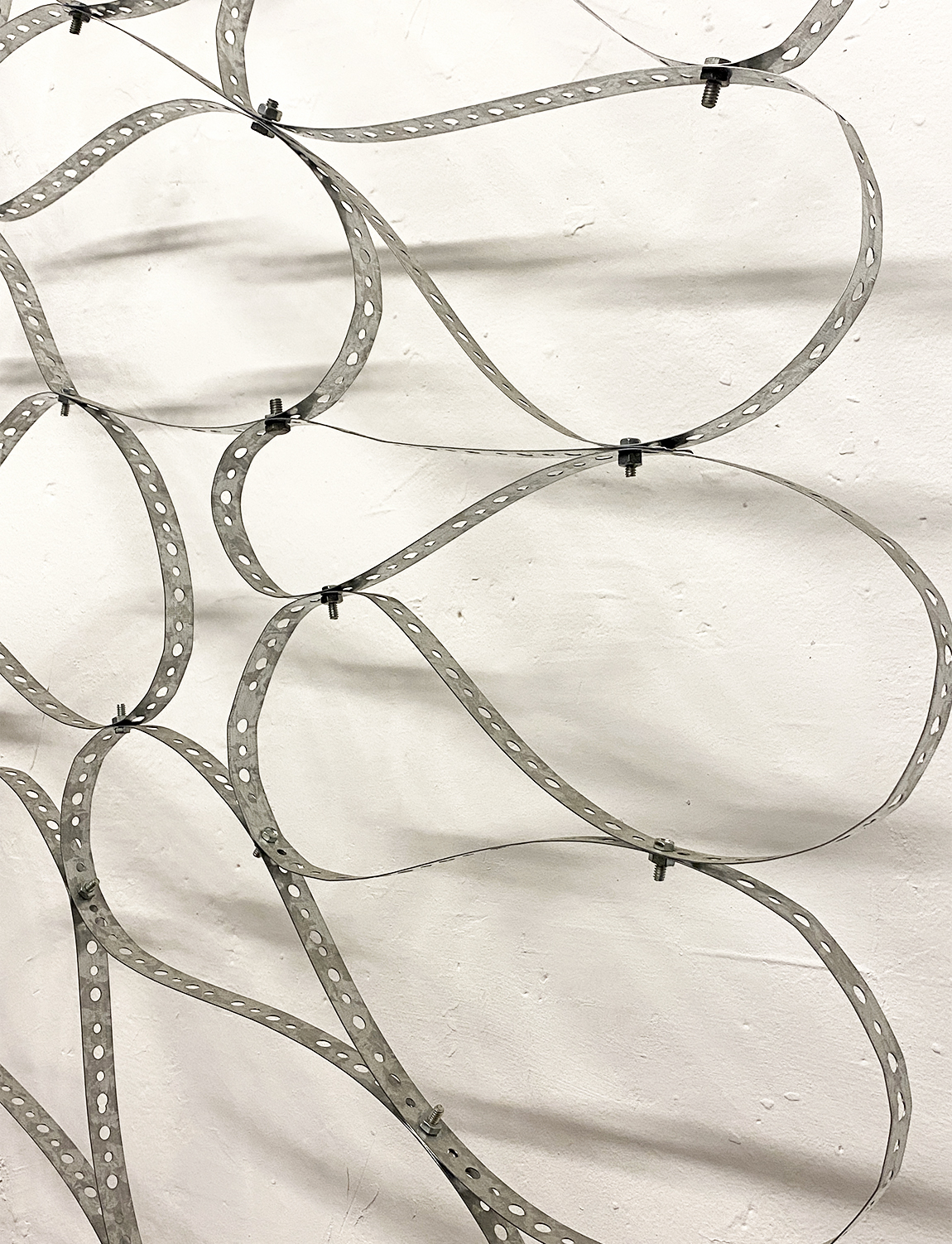 Restos de cartelera de la vía pública, flejes de pvc espumado y planchuela multiperforada galvanizada.